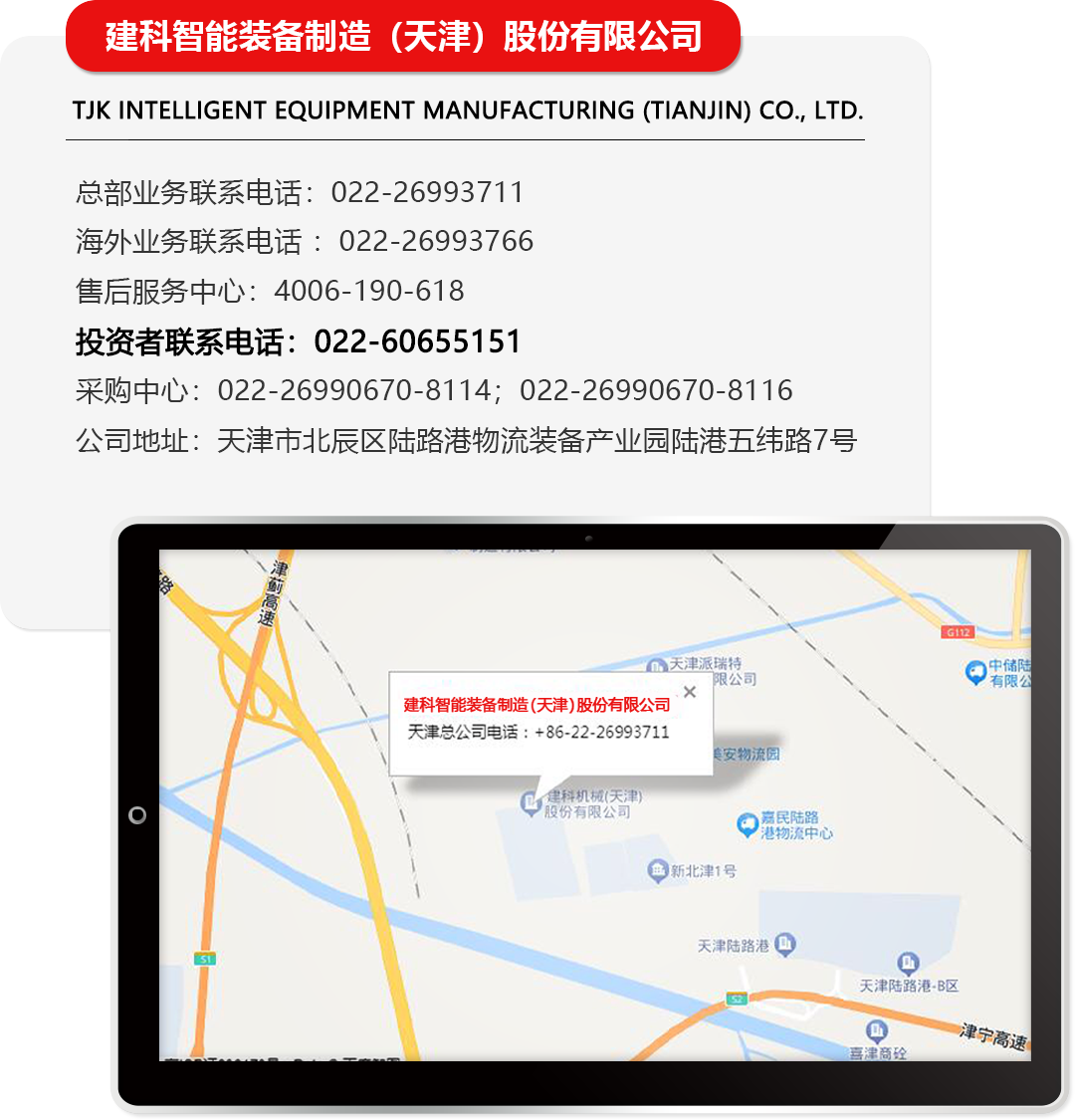 投資者電話聯系電話:022-60655151